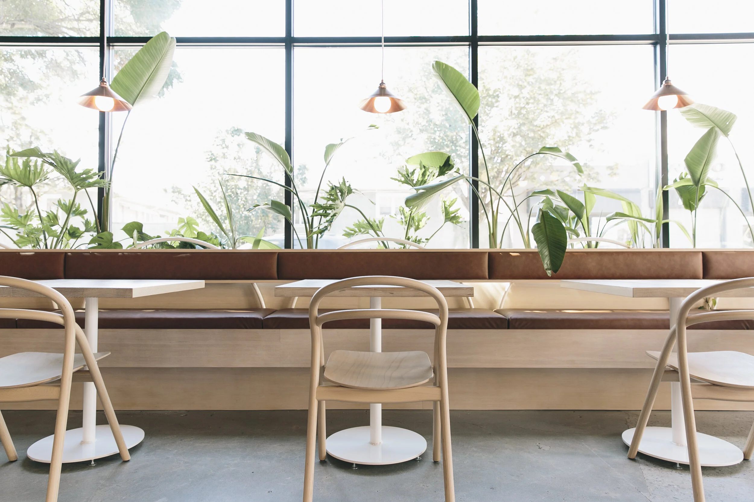 While at Open Studio Collective, I collaborated on a multi-disciplinary team to create a uniquely refined tasting room for Freeland Spirits, one of the few woman-owned distilleries in history. To tell the Freeland Spirits’ story, we developed subtle details for a tactile and olfactory experience: custom wheat-inspired wallpaper designed in-house, custom shelving units designed to display the distillery’s iconic glass bottles and jars filled with botanicals used in the distilling process, and copper detailing throughout the tasting room to reference the massive copper stills in full view behind the bar. We were fortunate to collaborate with many local women-owned businesses on this project: Fieldwork Flowers, to develop the plant installation, and with Fruit Salad Club, to create a custom mural that illustrates the story and process of Freeland Spirits.